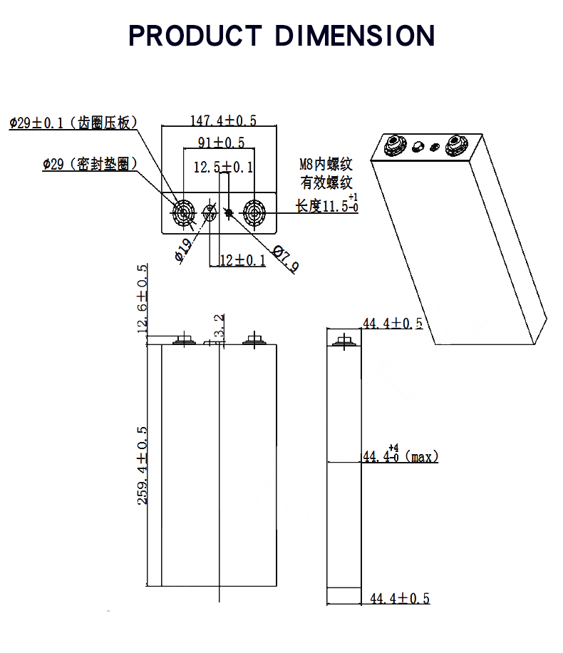 परिमाण (Pls. रेखांकनाचा संदर्भ घ्या) | 44.4*147.4*272 मिमी |