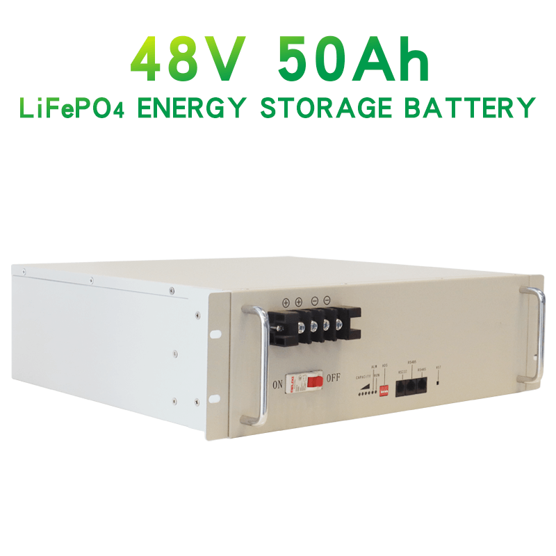 या 48V 50Ah LFP बॅटरी सिस्टीममध्ये बिल्ट-इन BMS आणि काळ्या किंवा पांढर्या रंगात रंगवलेला स्टेनलेस स्टील बॉक्स आहे.