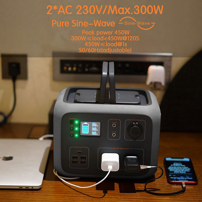 आउटडोर कॅम्पिंग ट्रॅव्हलसाठी बर्याच 300 डब्ल्यूएच पोर्टेबल जनरेटर पॉवर स्टेशन पॉवर सप्लाई
