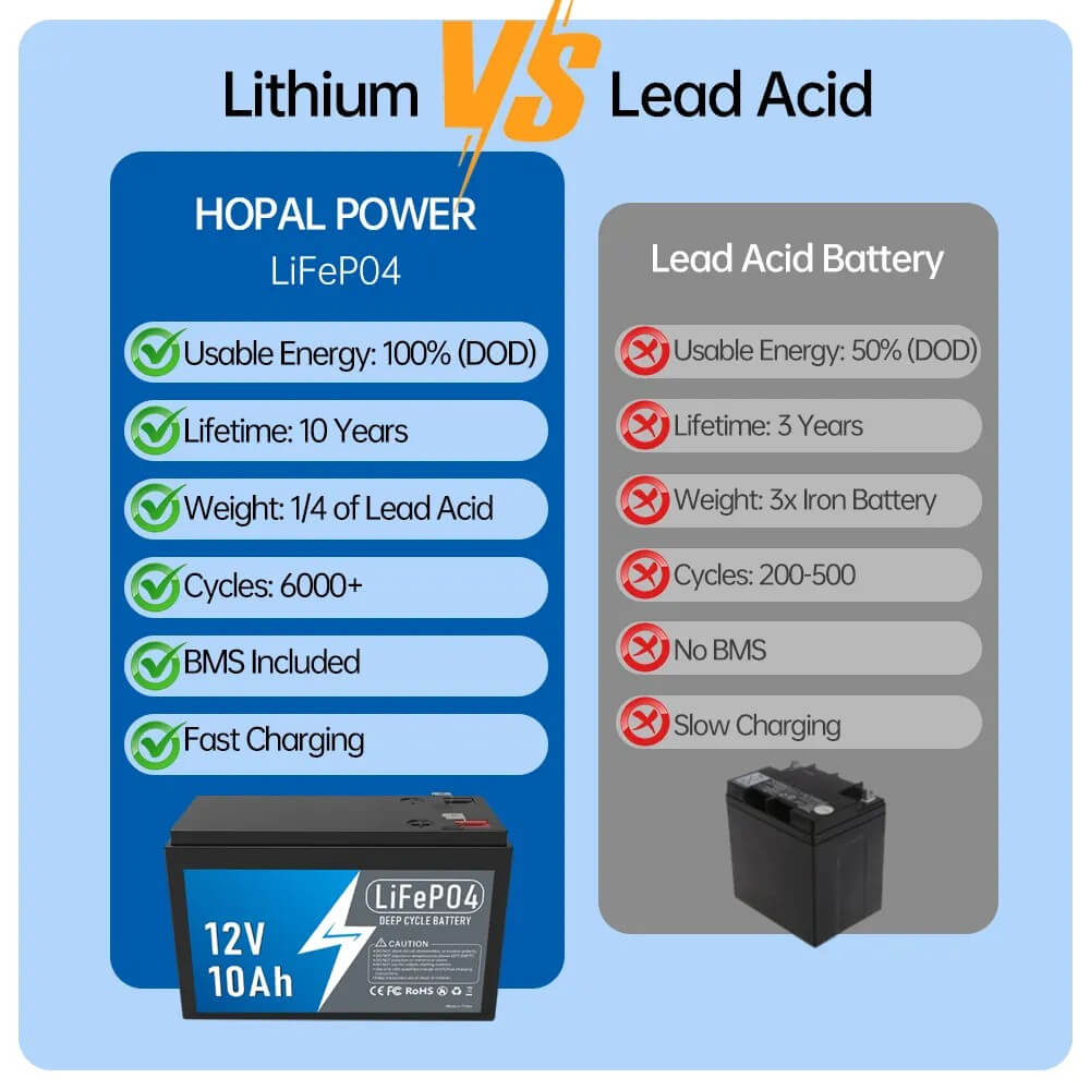 ऑल इन वन टेक्नॉलॉजीच्या लिथियम आयर्न फॉस्फेट (LiFePO4) बॅटरी दीर्घकाळ टिकणारी कार्यक्षमता, प्रगत सुरक्षितता आणि उच्च ऊर्जा कार्यक्षमता प्रदान करतात. 6000 हून अधिक चार्ज सायकल आणि बिल्ट-इन बॅटरी मॅनेजमेंट सिस्टम (BMS) सह, आमच्या बॅटरी उत्कृष्ट विश्वसनीयता आणि संरक्षण प्रदान करतात.