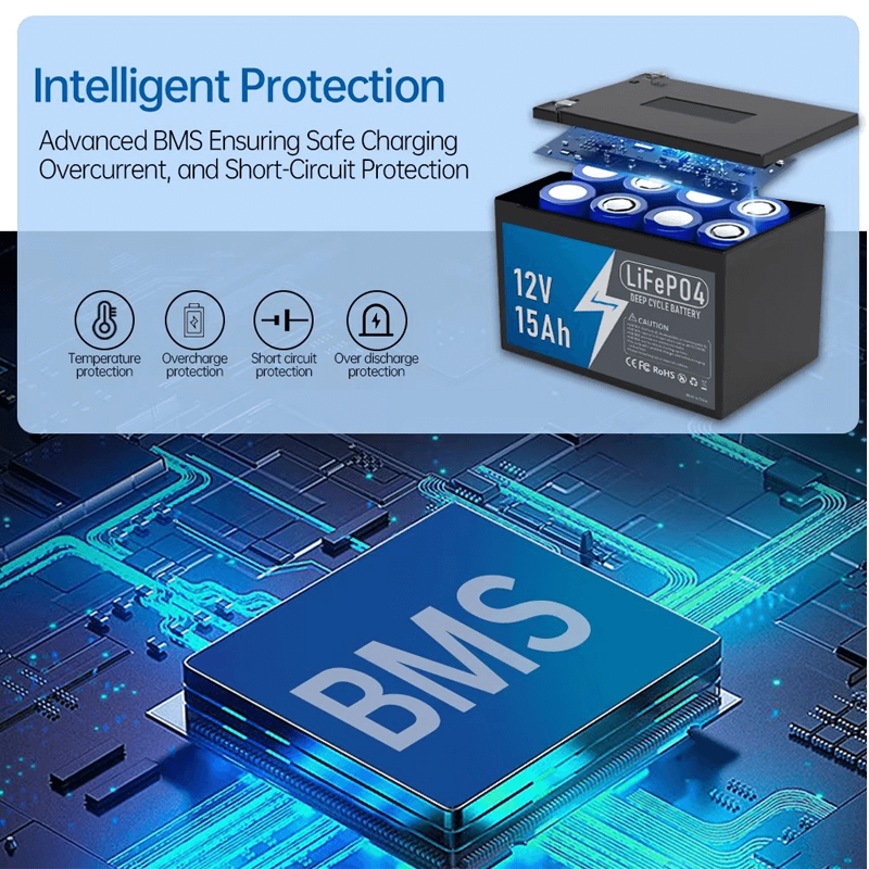 | मूलभूत तपशील | बॅटरी मॉडेल | १२V १५Ah LiFePO₄ बॅटरी |
